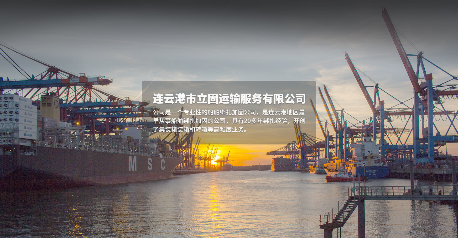 連云港市立固運輸服務有限公司成立于1997年,是集生產、銷售于一體的實體型企業,主要經營范圍包括國內外船舶貨物綁扎加固,船舶物料供應與回收;專業加工生產各類型的木托盤、木制包裝箱、免熏蒸膠合板木托盤,膠合板木箱等,并為客戶設計定制、安裝服務。